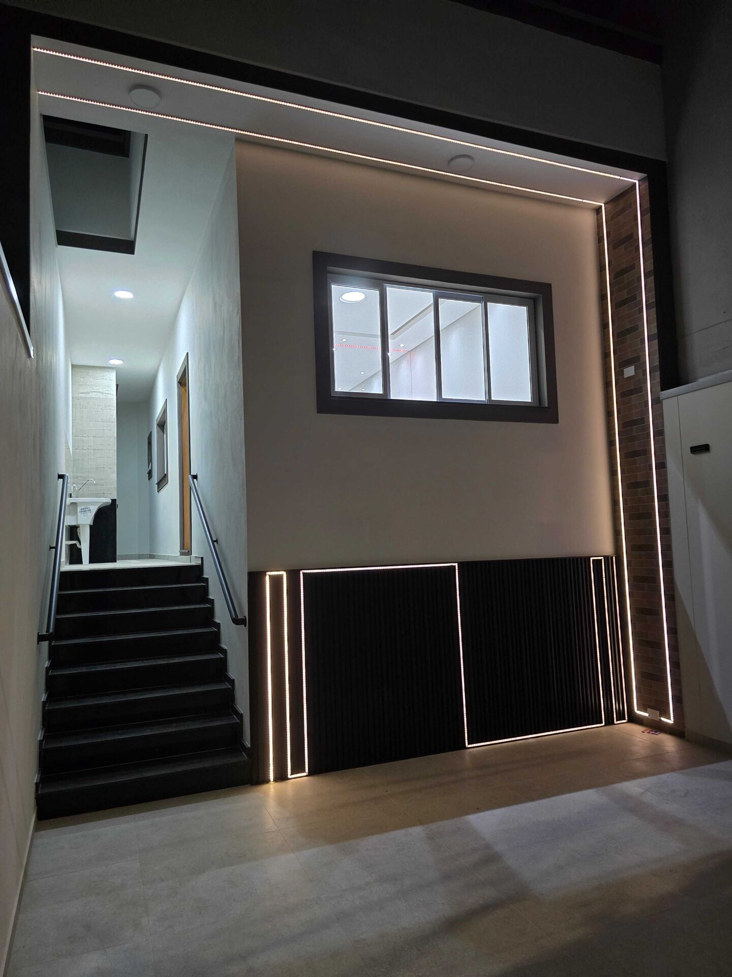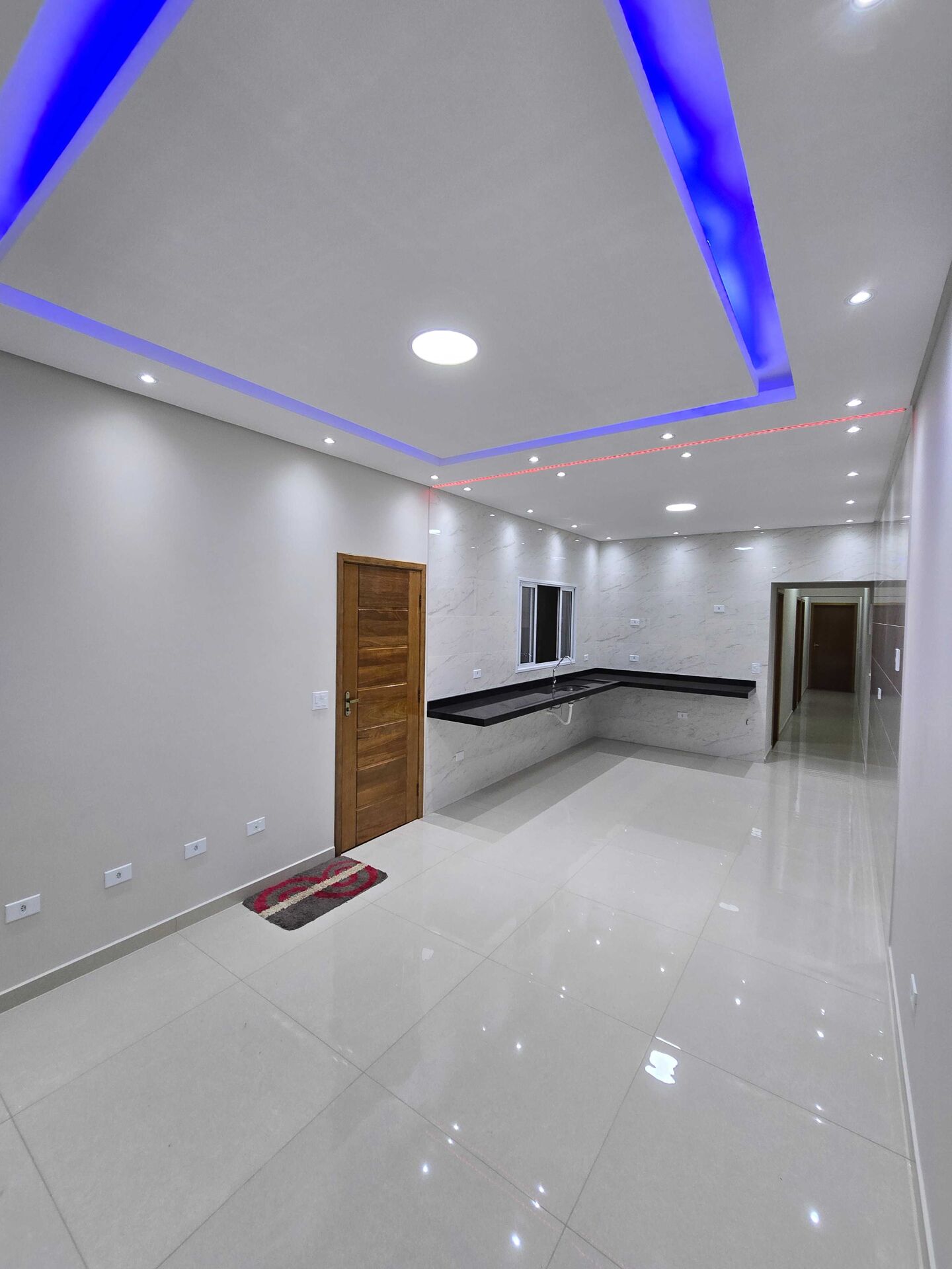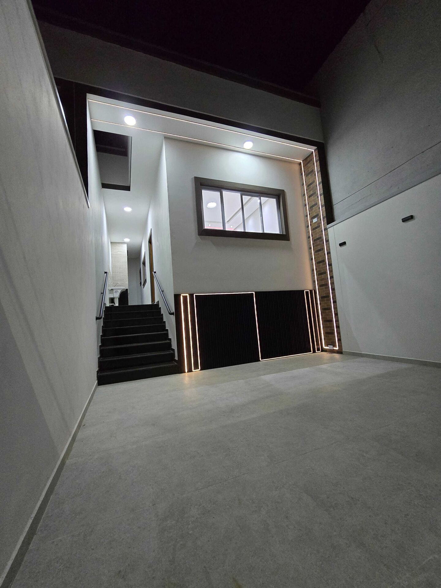 Sala ampla com iluminação moderna e excelente disposição de tomadas